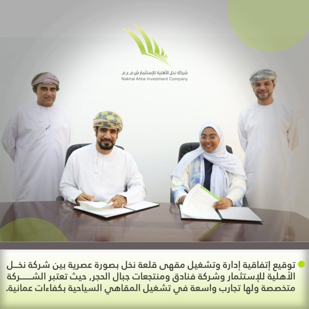 توقيع إتفاقية إدارة وتشغيل مقهى قلعة نخل بصورة عصرية بين شركة نخل الأهلية للإستثمار وشركة فنادق ومنتجعات جبال الحجر