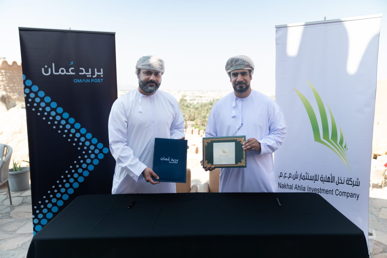 توقيع اتفاقية تعاون بين شركة نخل الأهلية للإستثمار وبريد عمان لعرض مجموعة من الطوابع التاريخية والمراسلات القديمة بقلعة نخل