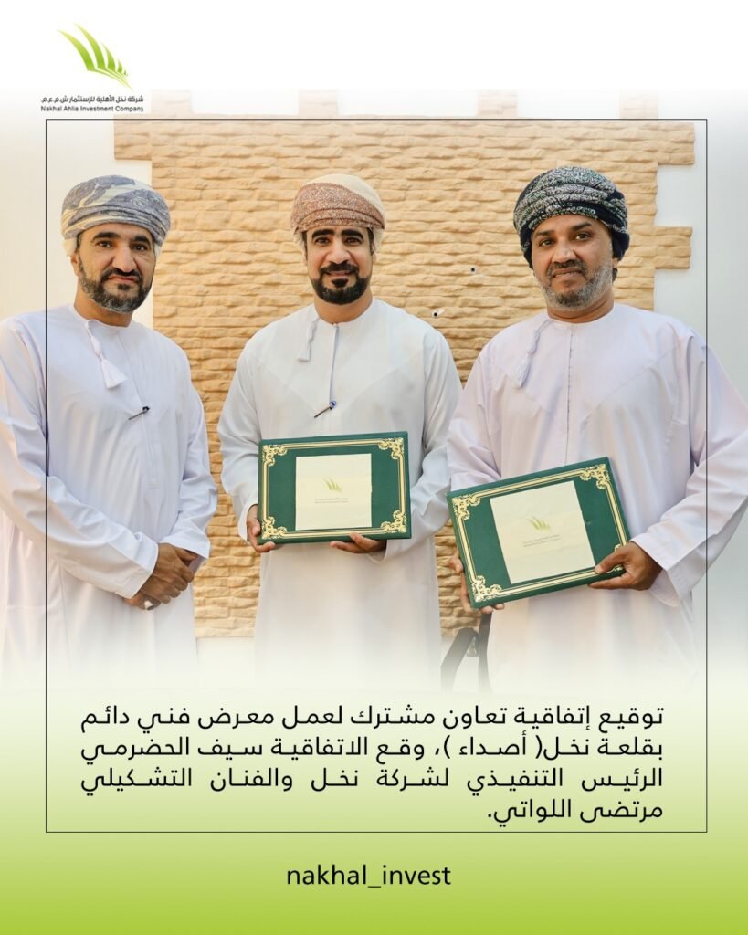 توقيع اتفاقية تعاون مشترك بين شركة نخل الاهلية ومركز ذاكرة عمان لاقامة معرض دائم في قلعة نخل بإسم ( معرض ذاكرة نخل)